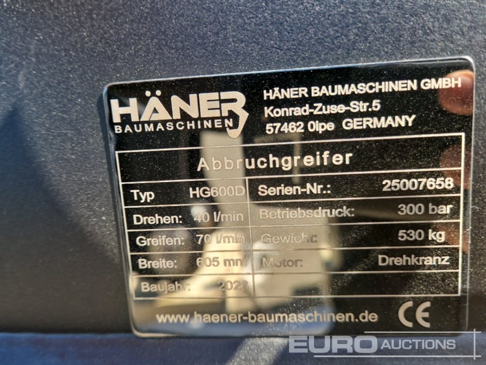 Unused 2026 Haner HG600D Rotating Sorting Grapple to suit Excavator, Copy of Declaration of Conformity Available / Copia de CE disponible. - 25007658