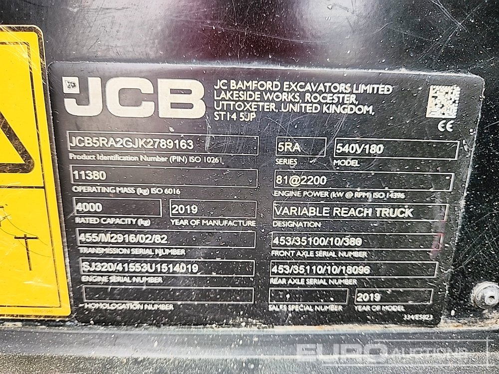 2019 JCB 540-180 Hi Viz Turbo Powershift Telehandler, Joystick Controls, Sway, Reverse Camera, WLI, QH, Forks (GCC DUTIES NOT PAID) - JCB5RA2GJK2789163