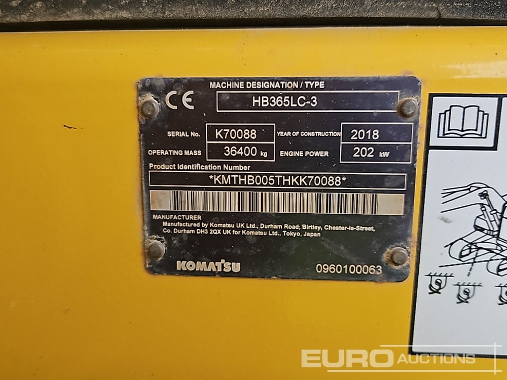 2018 Komatsu HB365LC-3 800mm Pads, CV, QH, Piped, Aux. Piping, 3 Way Camera, A/C - KMTHB005THKK70088