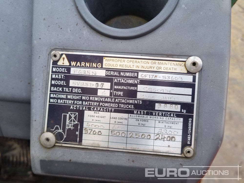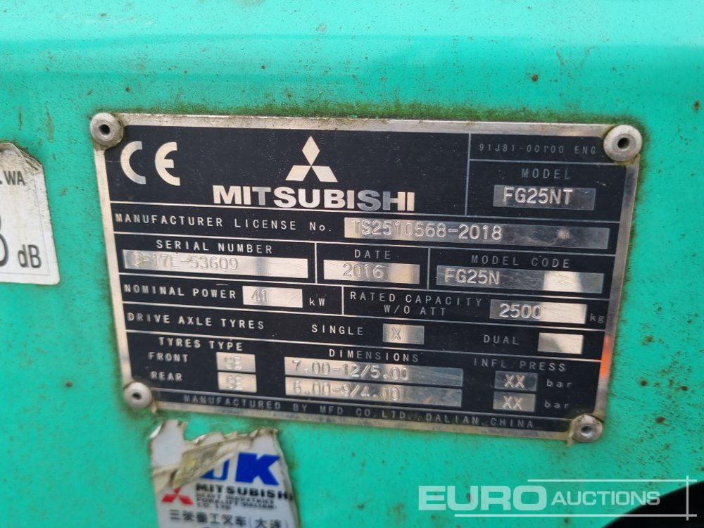 2016 Mitsibishi FG25N Gas Forklift, 2 Stage Mast, Side Shift, Forks - CF17E53609