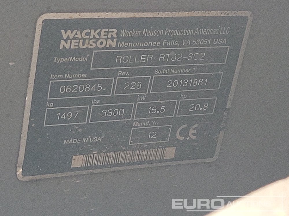 2012 Wacker Neuson RT82-SC2 Radio Controlled Double Drum Vibrating Padfoot Roller (Meter Reading: 950 Hours) - 20131881
