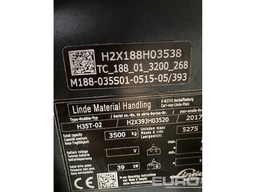 2017 Linde H35T-02 3.5 Ton Gas Forklift - H2X393H03520