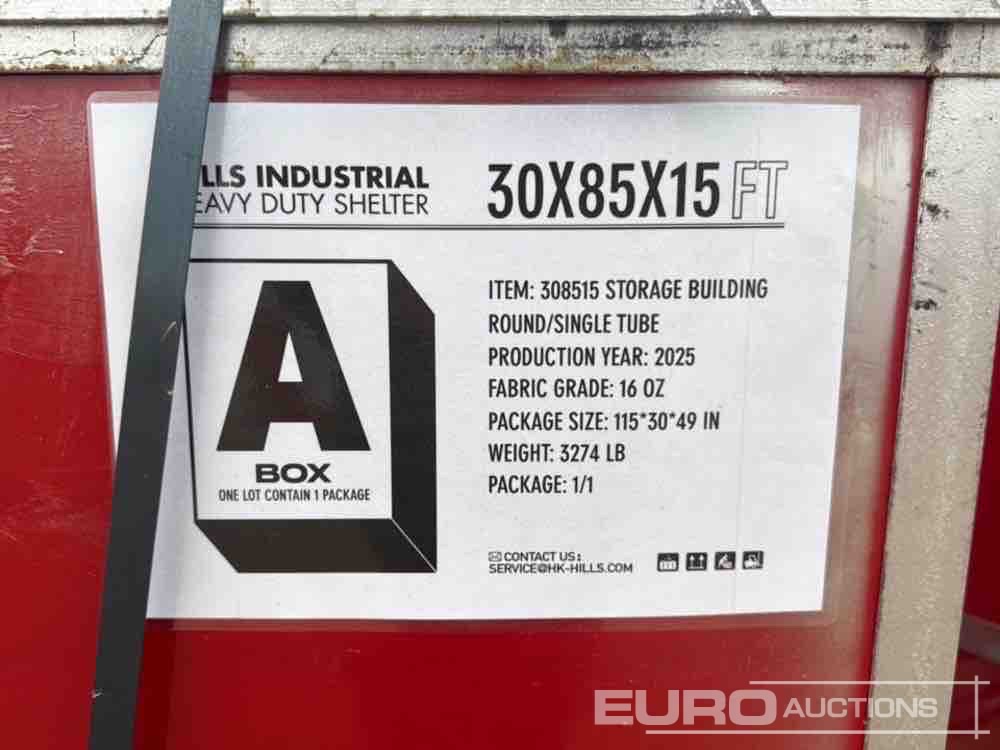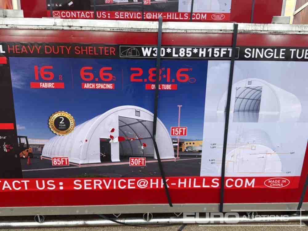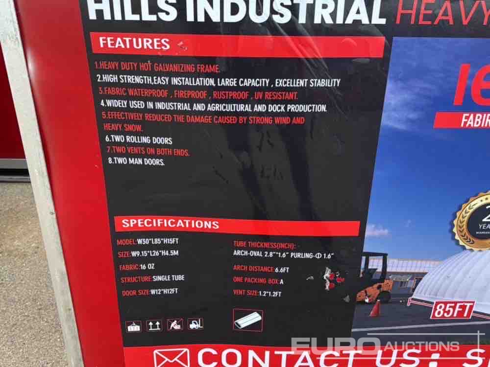 Unused Hills Industrial 30'x85'x15' Heavy Duty Hot Galvanizing Shelter Frame, Pvc Fabric Waterproof, Fireproof, Rustproof, Uv Resistant, Two Rolling Doors, Two Vents On Both Ends, Two Man Doors - 240079564