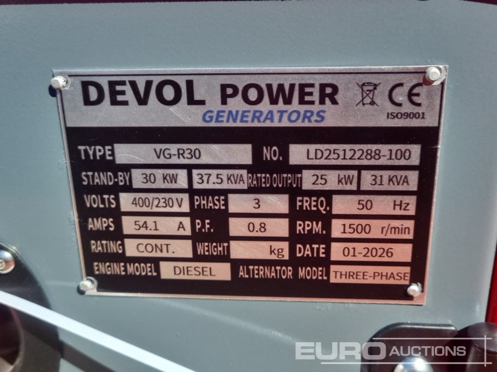 Unused 2026 Devol VG-R30 30kW Generator - LD2512288100