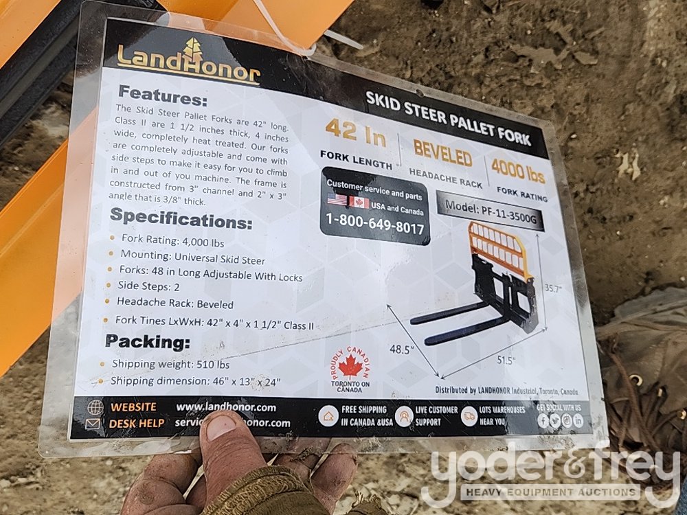 Unused 2025 Landhonor PF-11-3500G Pallet Fork to suit Skidsteer - HL-03182
