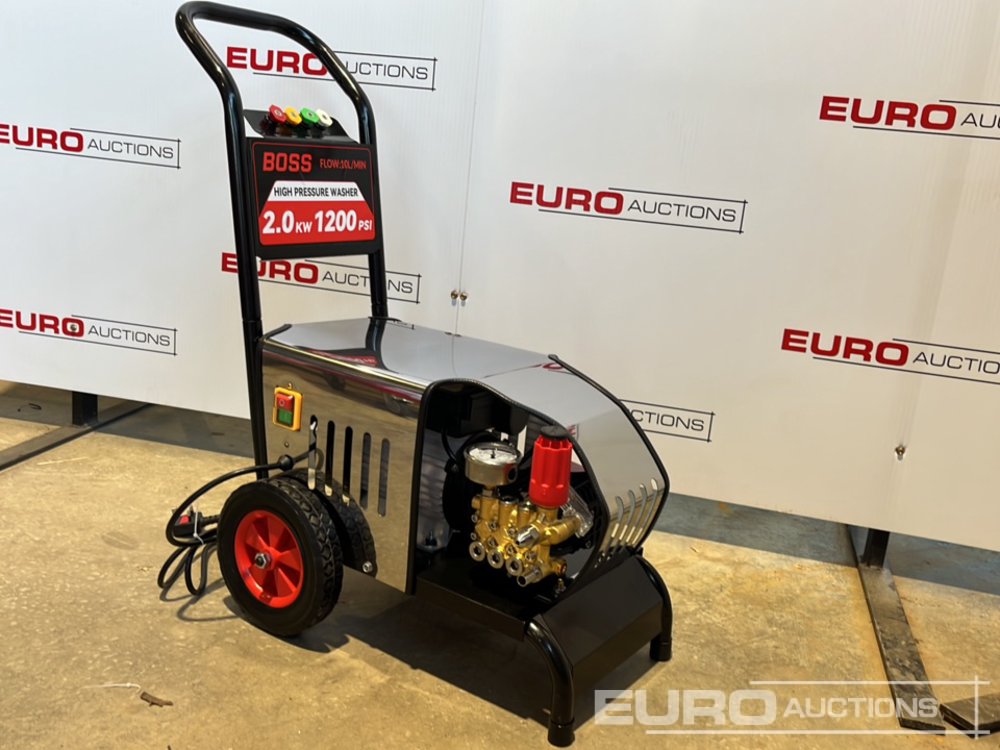 Unused Boss 17701 Electric High Pressure Washer, 1200PSI, 2kW, 10l/min flow, 220V, 10m Hose, Trigger, Washer Bottle, Filter & Fittings - 002872